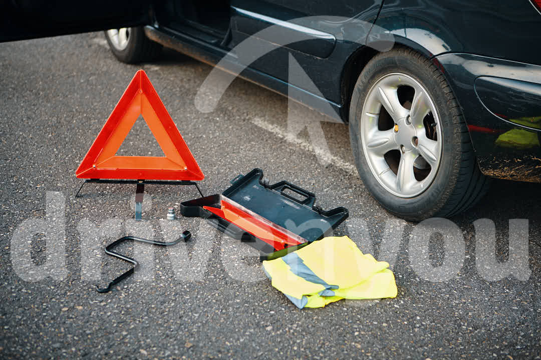 16. En previsión de que el conjunto que conduce pueda sufrir una avería en la carretera y con el fin de inmovilizarlo adecuadamente, ¿qué debe llevar en su vehículo?.